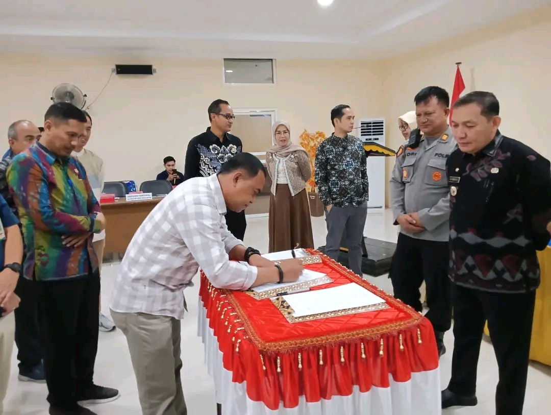 Acara dilanjutkan dengan penandatanganan surat dukungan oleh perwakilan dari instansi vertikal, instansi pemerintah daerah, BUMN/BUMD, dan swasta untuk pembentukan pelayanan publik. (*/CHL)