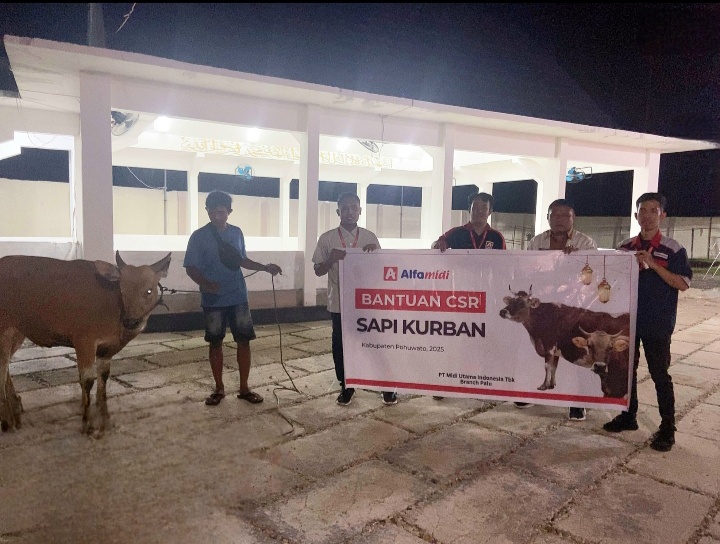 ELSINDO, PALU – Dalam momen Hari Raya Idul Adha 1446 H yang penuh semangat berbagi dan menebar kebaikan, Alfamidi menyalurkan satu ekor sapi kurban kepada Pemerintah Kabupaten Pohuwato, Gorontalo pada Kamis (5/6/2025).