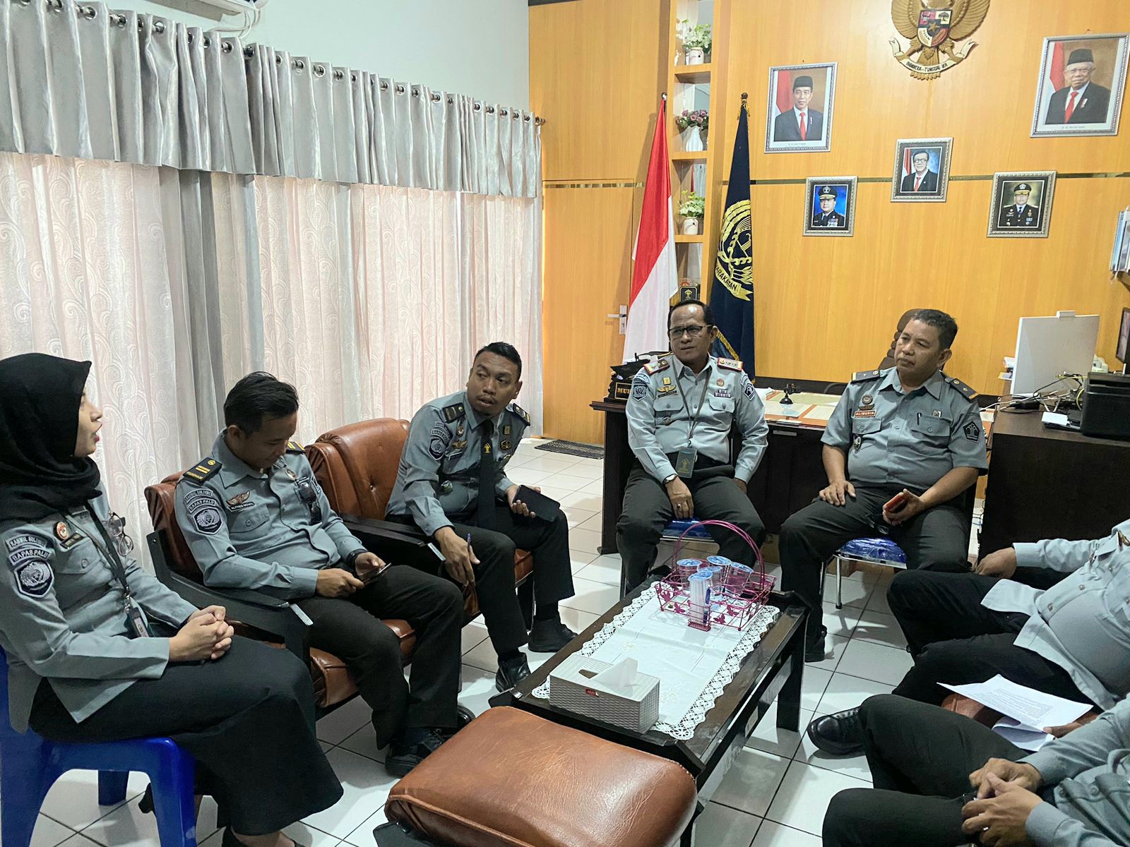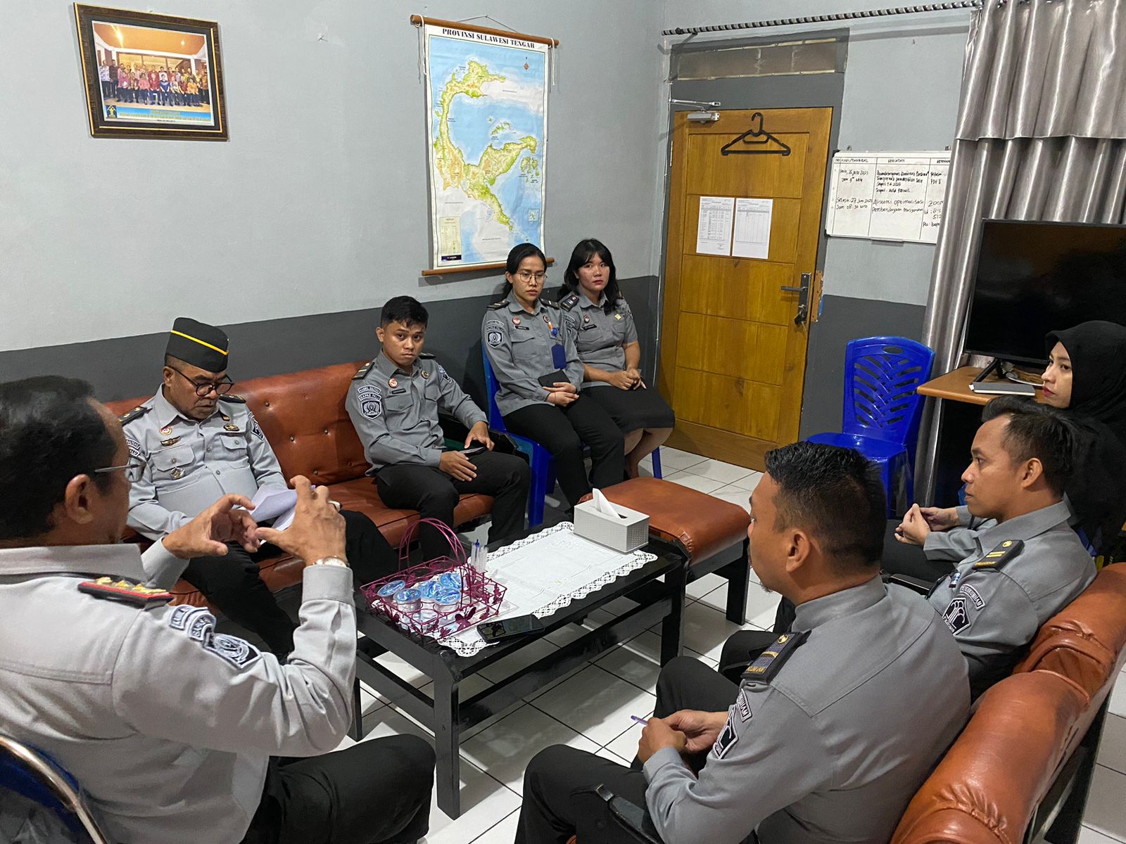 PIMPIN RAPAT- Kepala Bapas Kelas II Palu, Muh. Syahrir Azis, memimpin rapat penguatan tugas dan fungsi humas, Selasa, 10 Oktober 2023. FOTO: IST