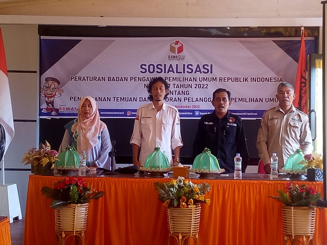 ELSINDO, MORUT– Bawaslu Kabupaten Morowali Utara (Morut) Gelar Sosialisasi Bawaslu nomor 7 tahun 2022 tentang Penanganan Temuan dan Laporan Penanganan Pemilihan Umum.