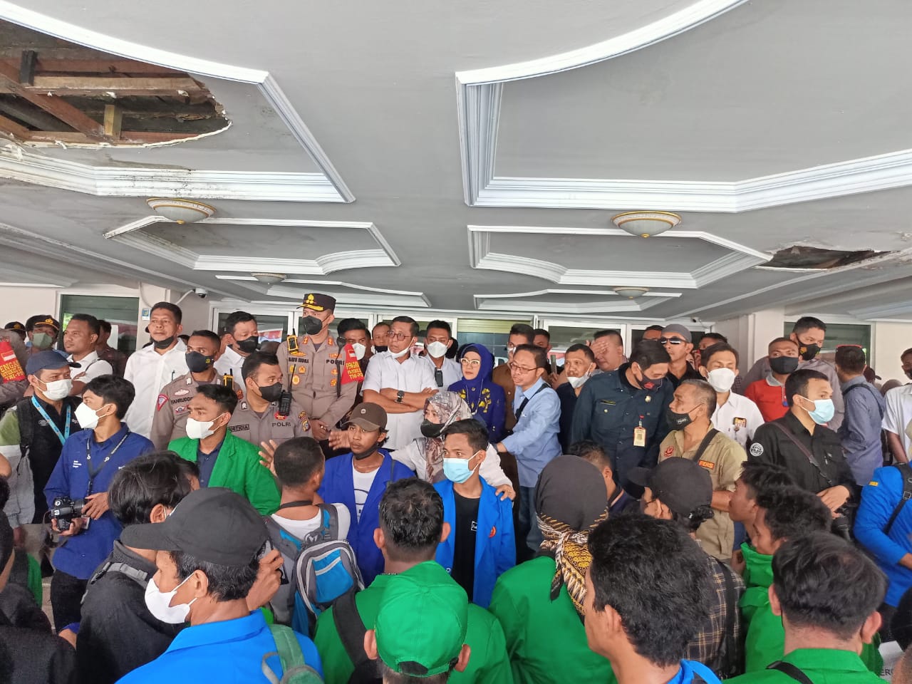 Dihadapan Ketua DPRD dan anggota, para demonstran menyampaikan lima tuntutannya. Pertama, hentikan dan tindak tegas oknum yang tetap mengiring isu penundaan pemilu dan perpanjangan masa jabatan. Kedua, stabilkan harga minyak goreng. Ketiga, Normalisasikan harga BBM.