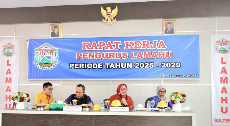 ELSINDO, PALU- Sekretaris Komisi IV, yang juga Ketua Fraksi PKS DPRD Sulteng, Hj Wiwik Jumatul Rofi’ah, S.Ag, MH, mewakili pimpinan DPRD Sulteng, menyampaikan materi di hadapan peserta Rapat Kerja (Raker) dan pengukuhan pengurus Ormas Lamahu Sulteng, Sabtu, 31 Agustus 2025.