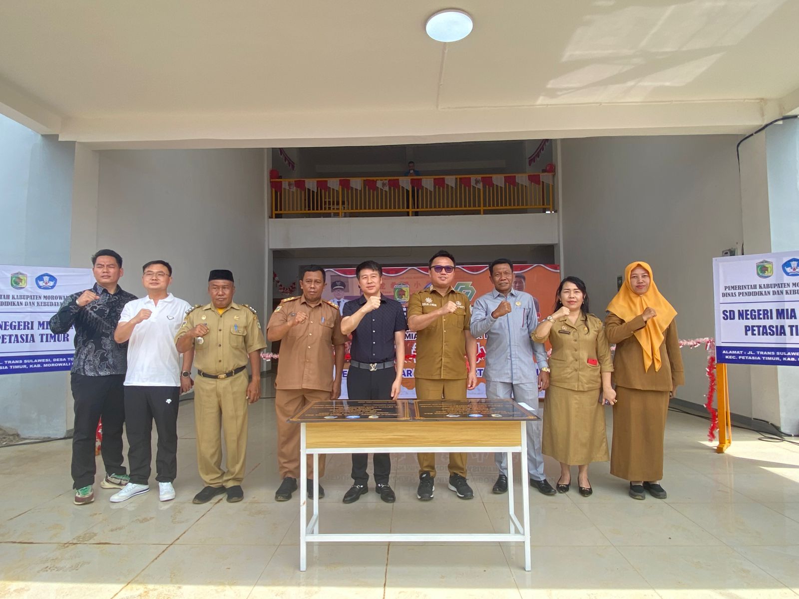 ELSINDO, MORUT– Bupati Morowali Utara Delis Julkarson Hehi dan Pimpinan Manajemen Site PT Gunbuster Nikel Industry (GNI) Mister Li Kaiguo meresmikan sekolah harapan PT GNI di Desa Bungintimbe, Kecamatan Petasia Timur, Senin (11/8/2025). Gedung sekolah tersebut akan menjadi tempat belajar anak-anak SD Mia Meambo (orang baik) dan SMP Mia Pande (orang pintar).