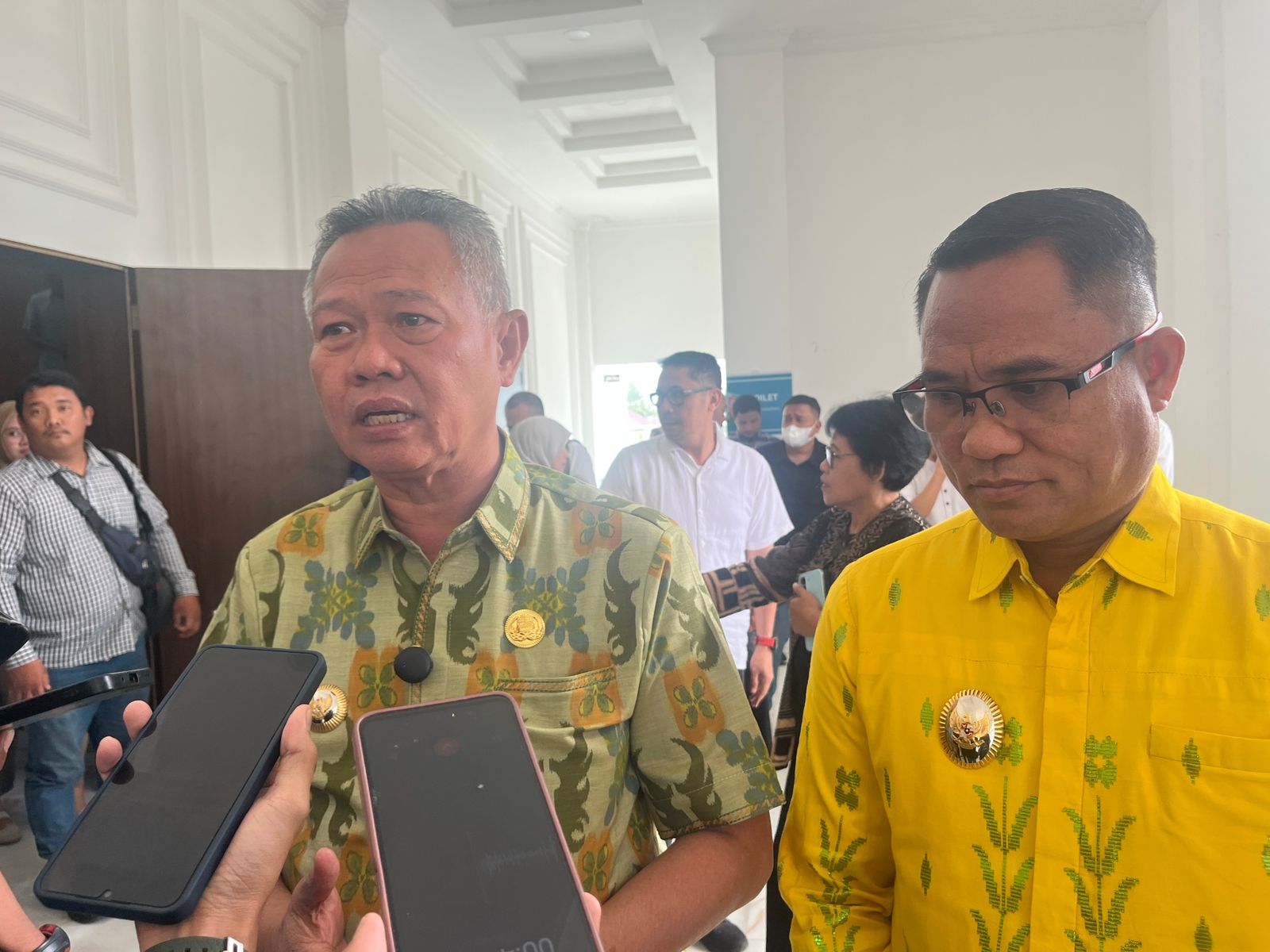 Bupati Sigi, Mohamad Rizal Intjenae didampingi Wakil Bupati Sigi, Samuel Y Pongi, berikan keterangan kepada jurnalis usai membuka kegiatan Sinkronisasi dan Harmonisasi RPJMD Kabupaten Sigi Tahun 2025-2029 dengan RPJM Desa dan APBDes, yang digelar di Gedung RTH Taiganja. FOTO: ISTIMEWA