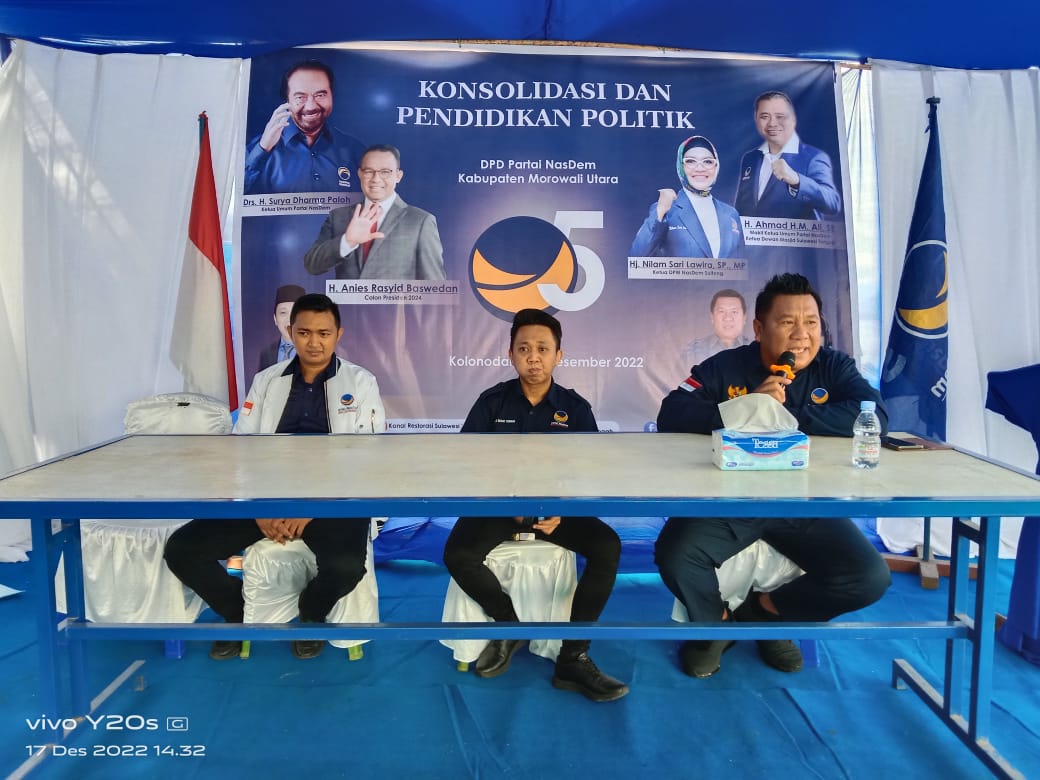 Dalam kegiatan konsolidasi ini dihadiri oleh sekitar 210 peserta dari sejumlah kecamatan. Kegiatan itu dibuka oleh Ketua DPD Partai Nasdem Kabupaten Morut Wahyu Hidayat Sudirman, S.IP.