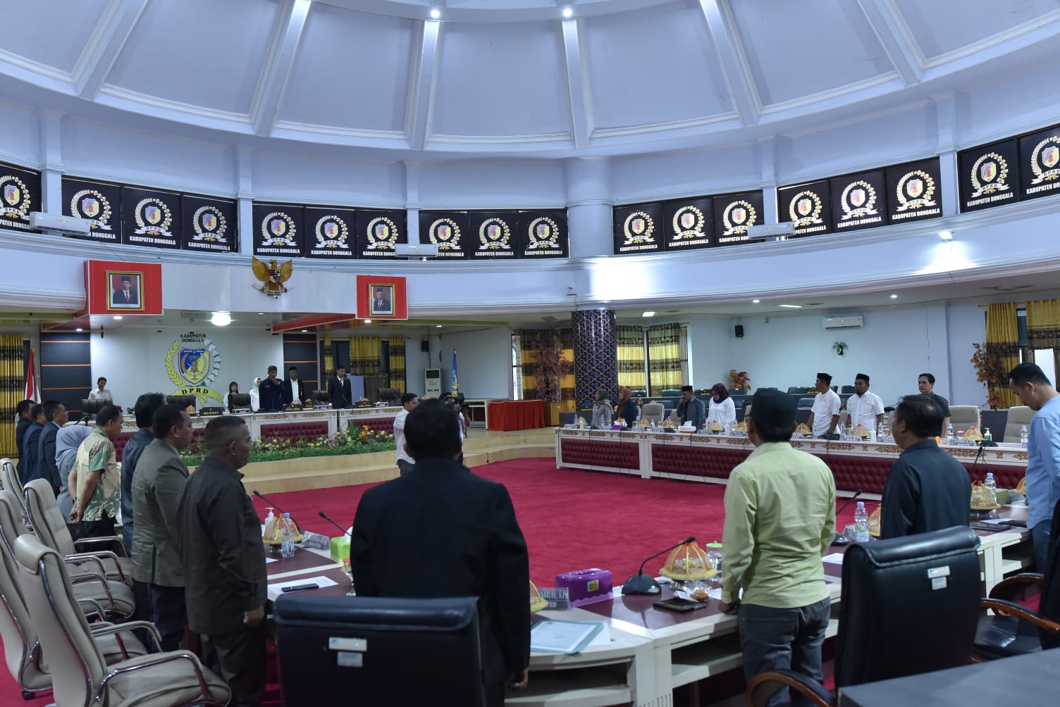 ELSINDO, DONGGALA- DPRD Kabupaten Donggala menggelar rapat paripurna masa persidangan ketiga tahun sidang 2024 pada Rabu, 18 September 2024, di Ruang Sidang Utama. Rapat ini dipimpin oleh Ketua DPRD Sementara, Moh Taufik, didampingi oleh Wakil Ketua I Sementara, Kelvin Soputra, dan dihadiri oleh 24 anggota DPRD.