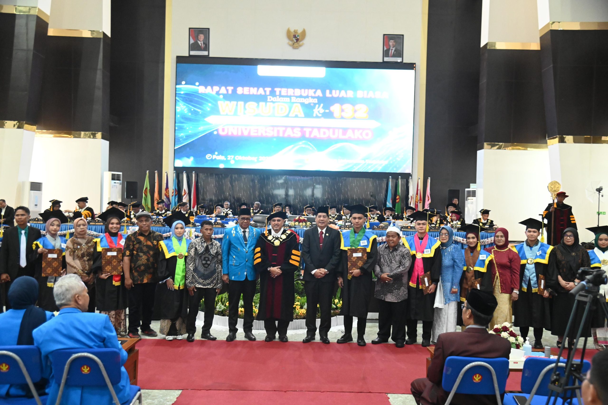 Kegiatan ini turut dihadiri oleh Asisten I Pemprov Sulteng Dr. Fahrudin Yambas, mewakili Gubernur, Rektor Untad Prof. Dr. Ir. Amar, ST., MT., IPU., ASEAN Eng, para guru besar, dekan, orang tua wisudawan, dan tamu undangan lainnya.