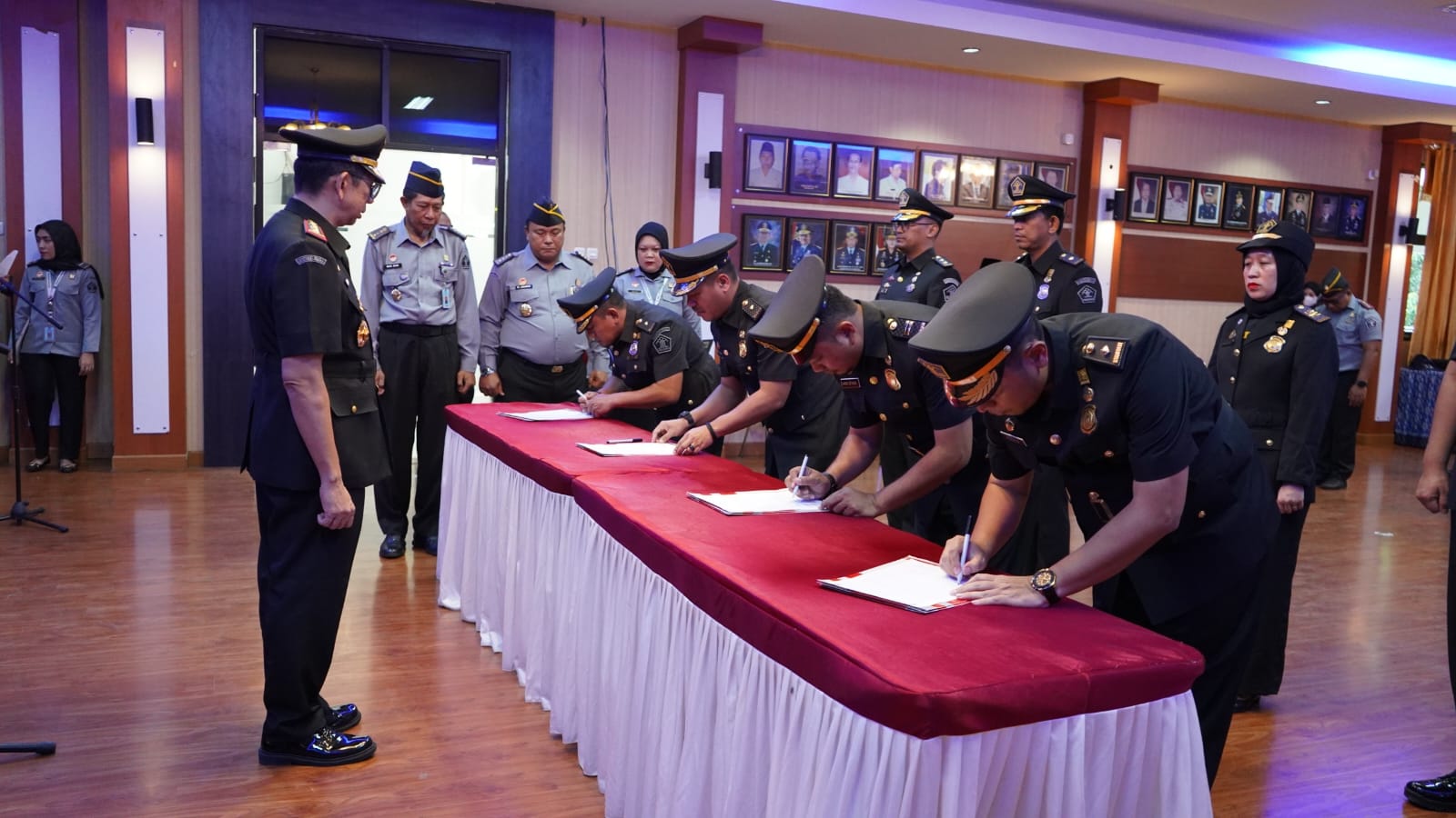 PENANDATANGANAN- Kepala Kantor Wilayah Kementerian Hukum dan HAM Sulawesi Tengah, Hermansyah Siregar, menyaksikan penandatanganan pelantikan pada Senin (10/06). FOTO: IST