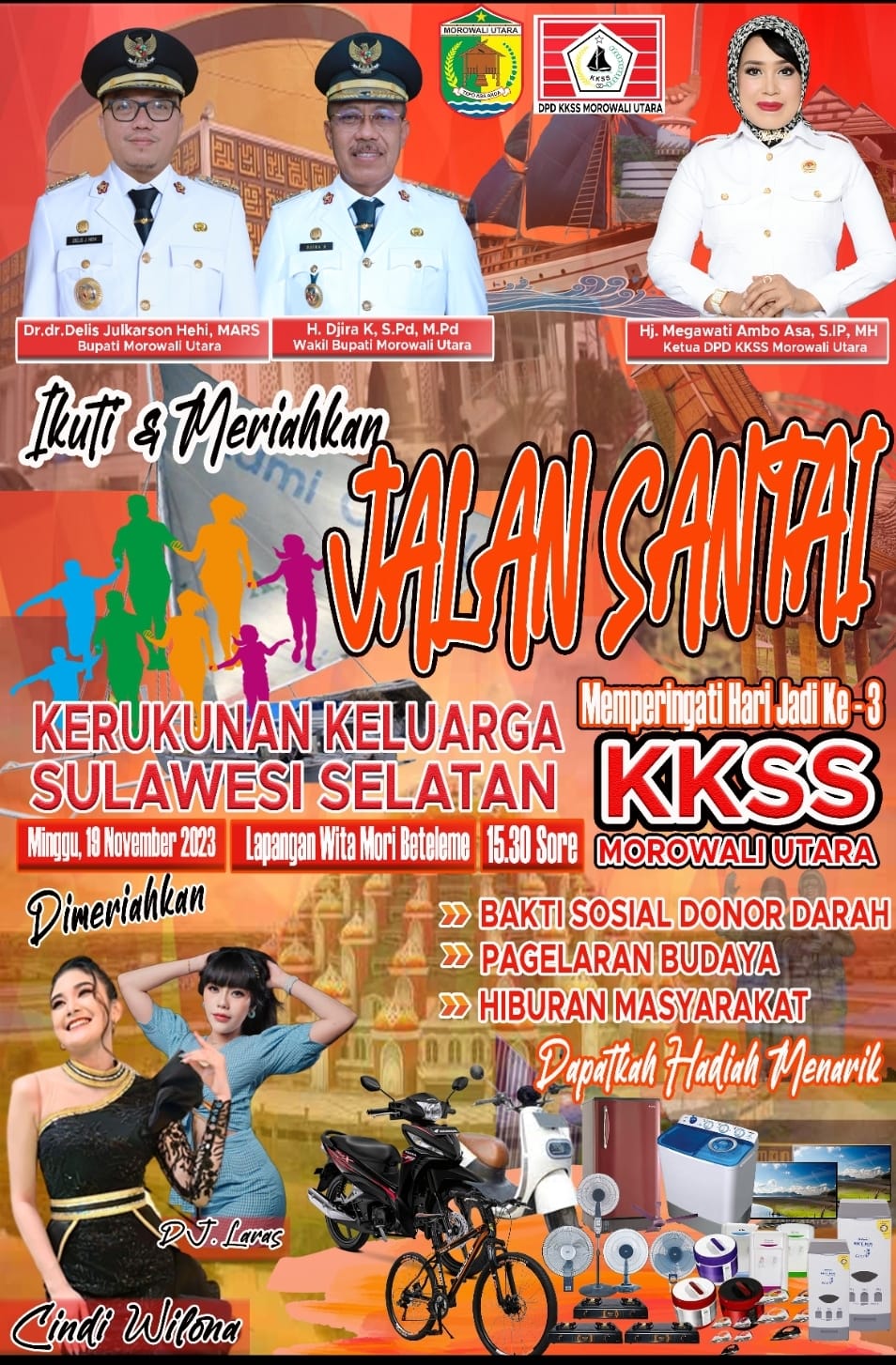 Kata Megawati, selain jalan santai, pada HUT KKSS Morowali Utara juga akan mengelar bakti sosial donor darah, pagelaran budaya serta hiburan masyarakat.