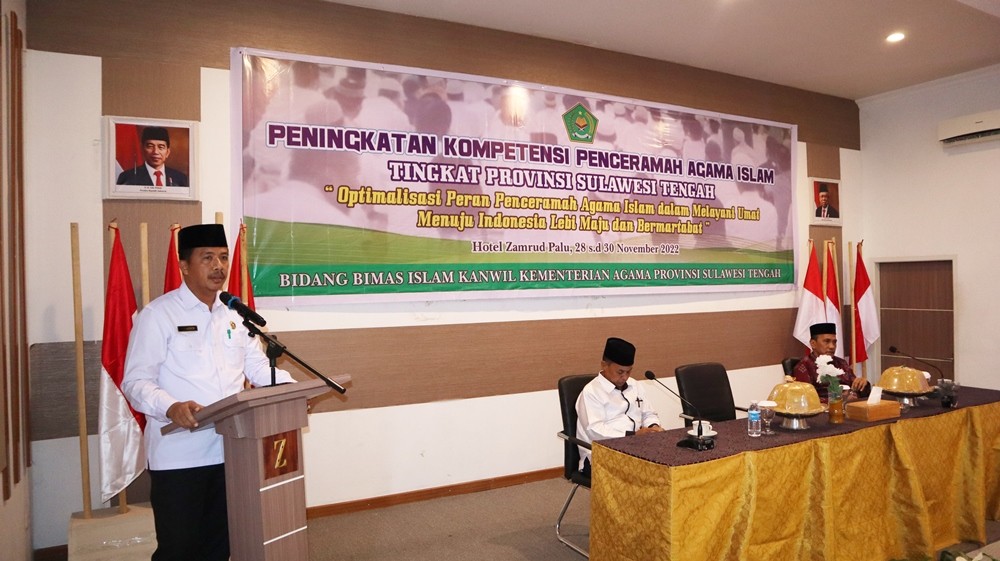 ELSINDO, PALU- Kantor Wilayah (Kanwil) Kementerian Agama (Kemenag) Sulteng, melalui Bidang Bimbingan Masyarakat Islam (Bimais), menggelar Peningkatan Kompetensi Penceramah Agama Islam tingkat Sulteng, di salah satu hotel di Kota Palu, Senin, 28 November 2022.