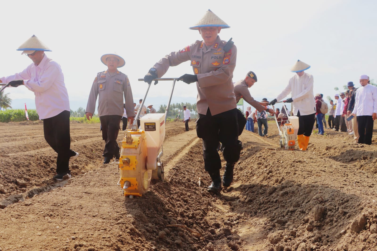 Kapolres Sigi, AKBP Kari Amsah Ritonga, bersama Pimpinan Ponpes Alkhairaat, Alhabib Dr. Ali Hasan Aljufri, dan Kadis Pertanian Sigi, Rahmad Iqbal Nurkhalish, melakukan penanaman jagung secara simbolis di lokasi tersebut.
