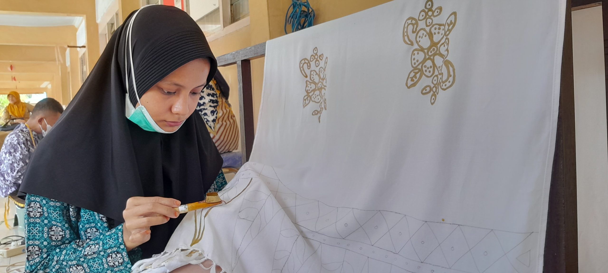 “Hadra baru pertama kali ikut lomba seperti ini. Kami berharap ia bisa juara, karena sudah banyak karya batik yang ia hasilkan,” ujar Nuning, pendamping Hadra.