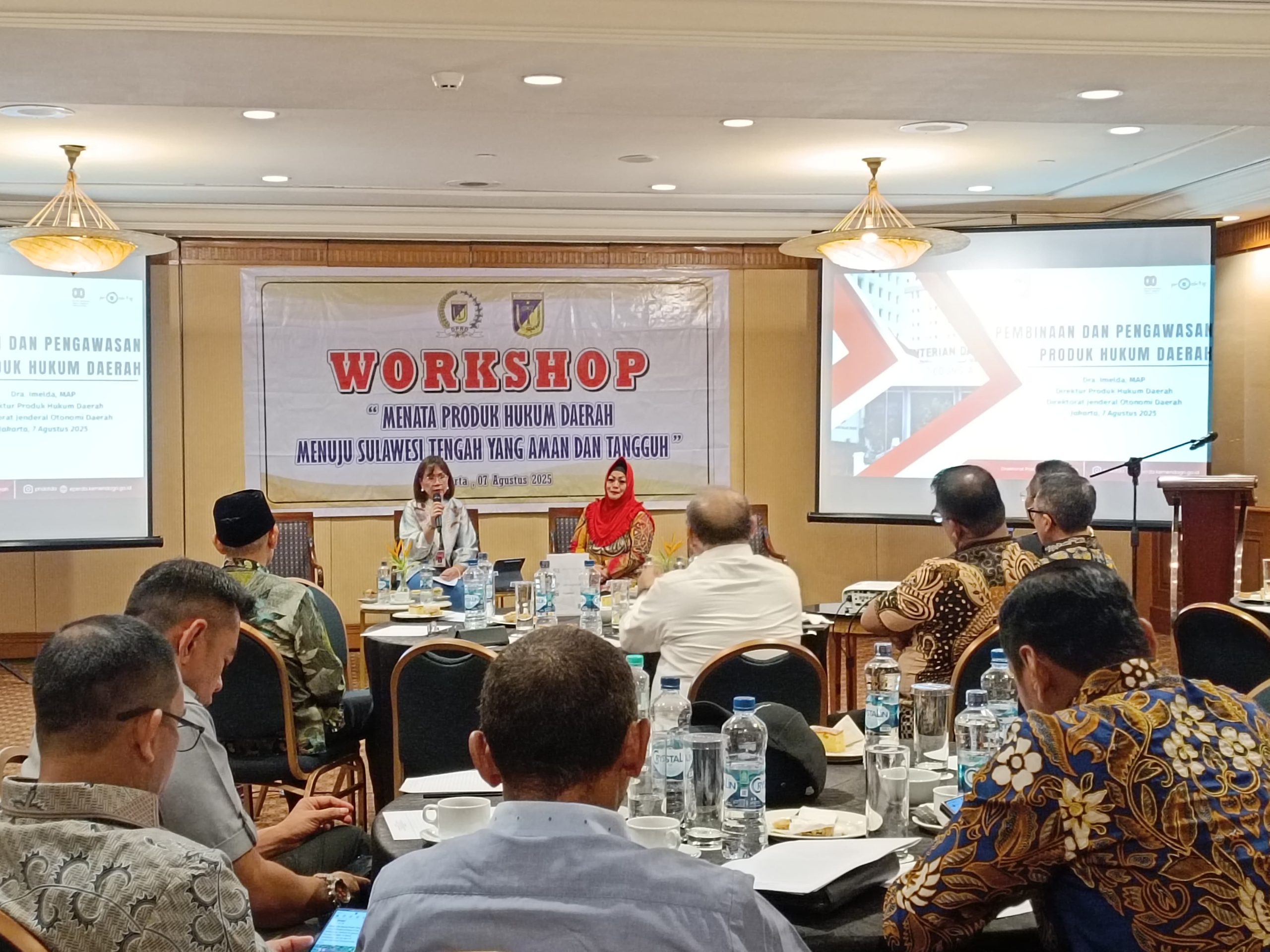 ELSINDO, JAKARTA– Dewan Perwakilan Rakyat Daerah Provinsi Sulawesi Tengah (DPRD Sulteng) menyelenggarakan workshop bertajuk “Menata Produk Hukum Daerah Menuju Sulawesi Tengah yang Aman dan Tangguh” di Hotel Aryaduta Menteng, Jakarta, Kamis (7/8/2025). Kegiatan ini menjadi bagian dari upaya penguatan kapasitas kelembagaan dalam membentuk produk hukum daerah yang berkualitas, efektif, dan responsif terhadap kebutuhan masyarakat.