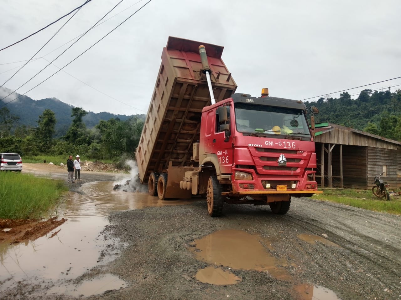 PT GNI menghabiskan ribuan Ret kendaraan 10 roda mengangkut material untuk meningkatkan jalan masyarakat setempat yang di timbun antara 1 hingga 2 meter sejak perusahaan tersebut beraktivitas di Kabupaten Morowali Utara.(**)