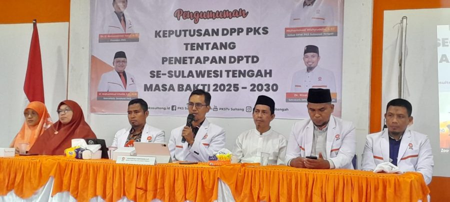 ELSINDO, PALU– Dewan Pimpinan Wilayah (DPW) Partai Keadilan Sejahtera (PKS) Provinsi Sulawesi Tengah resmi mengumumkan Keputusan DPP PKS tentang penetapan Dewan Pimpinan Tingkat Daerah (DPTD) se-Sulteng masa bakti 2025–2030. Pengumuman itu diikuti oleh sejumlah pengurus PKS, baik secara langsung maupun daring melalui Zoom Meeting, di Aula Lantai II DPTW PKS Sulteng, Kamis, 14 Agustus 2025.