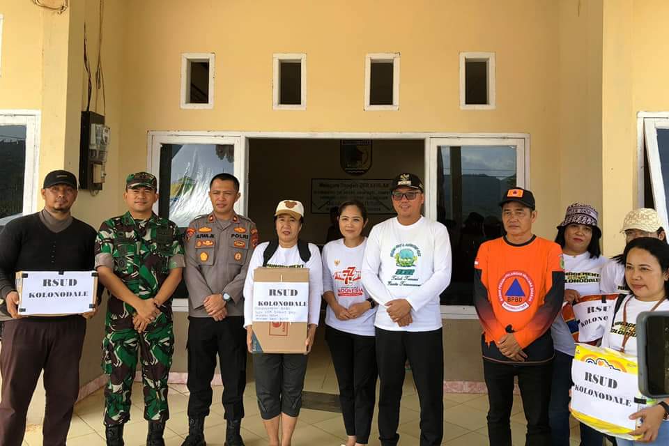 Pemberian bantuan dari RSUD Kolonodale dikoordinir langsung Direktur RSUD dr. Sherly Pede, M.Kes dan Sekretaris Yusdah Ramaino, A.Md, Ke.